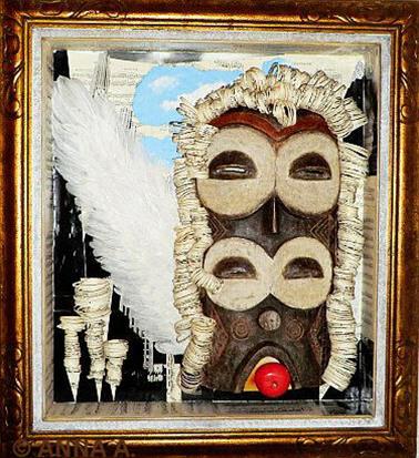 Feathers, paper, plastic, wood, original 1930th Bemba mask
